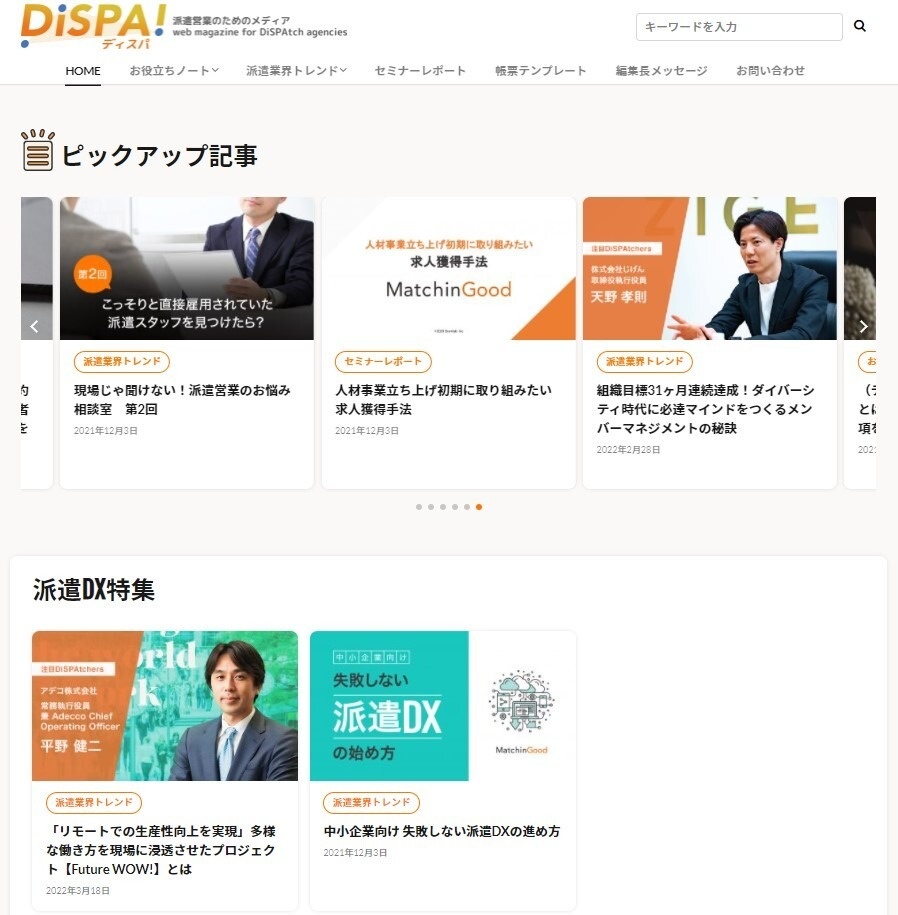 ブレイン・ラボが提供する派遣会社で働く人々に寄り添うメディア「ディスパ!」は、派遣事業の支援を通じて全ての人が自分らしく生きる世界の実現を目指すために、営業現場の課題解決や新たな挑戦の後押しをする情報をお届けするメディアです。
