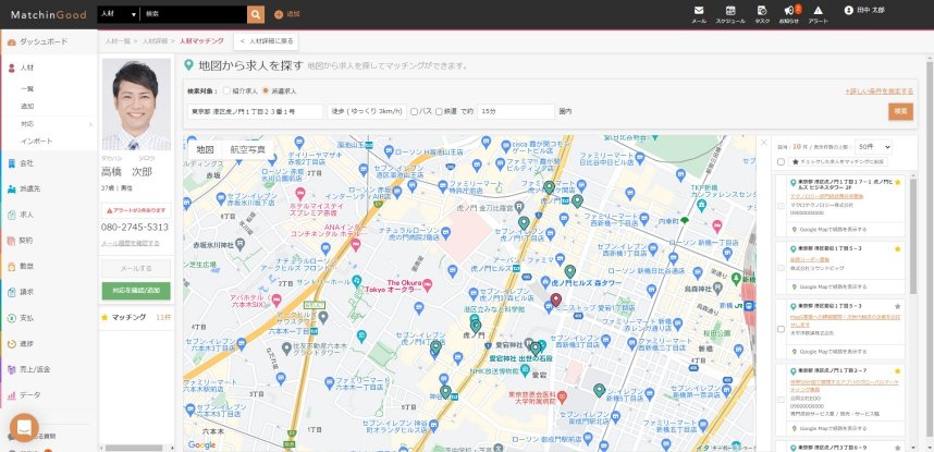 人材派遣向けクラウド業務管理システム「マッチングッド派遣」が、地図マッチング機能を追加。地図上から求人・求職者を視覚的に検索できることで、コーディネーター業務の効率化や質向上を実現